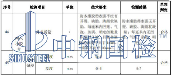 中鋼國檢作為老牌第三方檢測機(jī)構(gòu),深耕行業(yè)40年,其擁有非常豐富的伸縮裝置檢測經(jīng)驗(yàn),下面是某單位委托中鋼國檢做的橋梁伸縮裝置檢測,客戶送檢了1根3米的成品、3塊壓縮試塊、1根橡膠條、5片橡膠試片和1塊鋼蓋板樣品,共委托了45項(xiàng)檢測項(xiàng)目指標(biāo),中鋼國檢10天完成了全部檢測,并出具了相應(yīng)的檢測報告,詳細(xì)內(nèi)容如下: